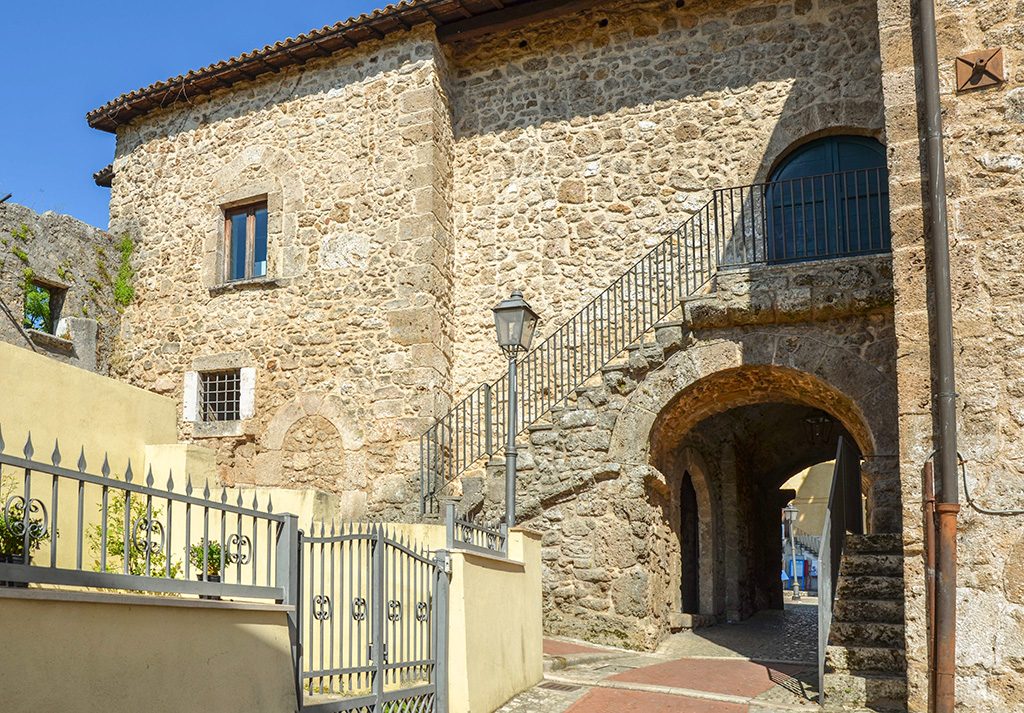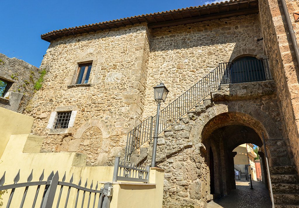 Built in the X century under the reign of Adolfo II, the fortified palace imposes on the travertine bench placed on the edge opposite the Roman center and Lombard of Aquino. Up to 1252, the date of the destruction of Aquino brought about by Corrado IV, the town that had developed on the plateau to the west of the three large lakes, had continued to coexist with the castle. As late as the thirteenth century, around the of Counts Palace, begins to develop a real fortified center. The pseudo square tower, still visible today in the upper part of the center, was built to defend the eastern side devoid of natural defenses. In the eighteenth century, with the construction of the new cathedral of San Costanzo, destroyed during the last war, the tower was converted into a bell tower. Near the tower you can see the ruins of the real palace of counts already known as the birthplace of St. Thomas. On the façade there are two mullioned windows (windows double opening) dating from the fourteenth and fifteenth centuries. While the first is characterized by the presence of two lancet arches, the second is embellished with decorative motifs in Catalan style and two trefoil arches. In the lower part of the village you can see the remains of the great cylindrical tower built to defend the bridge, taking advantage of a natural narrowing of the banks, allowed the crossing of the lakes. Just before the tower, through a vaulted passage, leads to the Natural Park of The Valley where the waters flow into the stream “Forme di Aquino”.