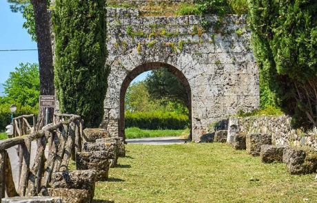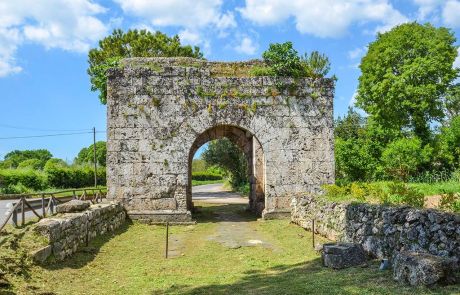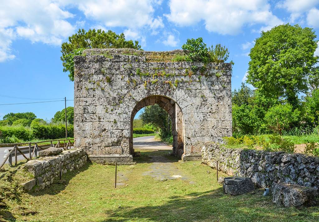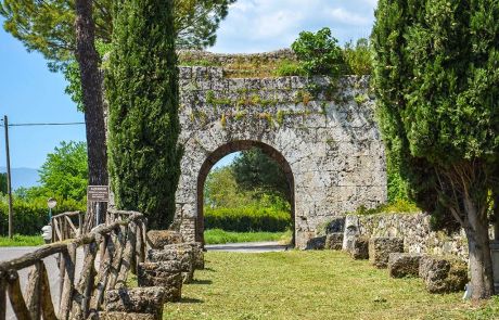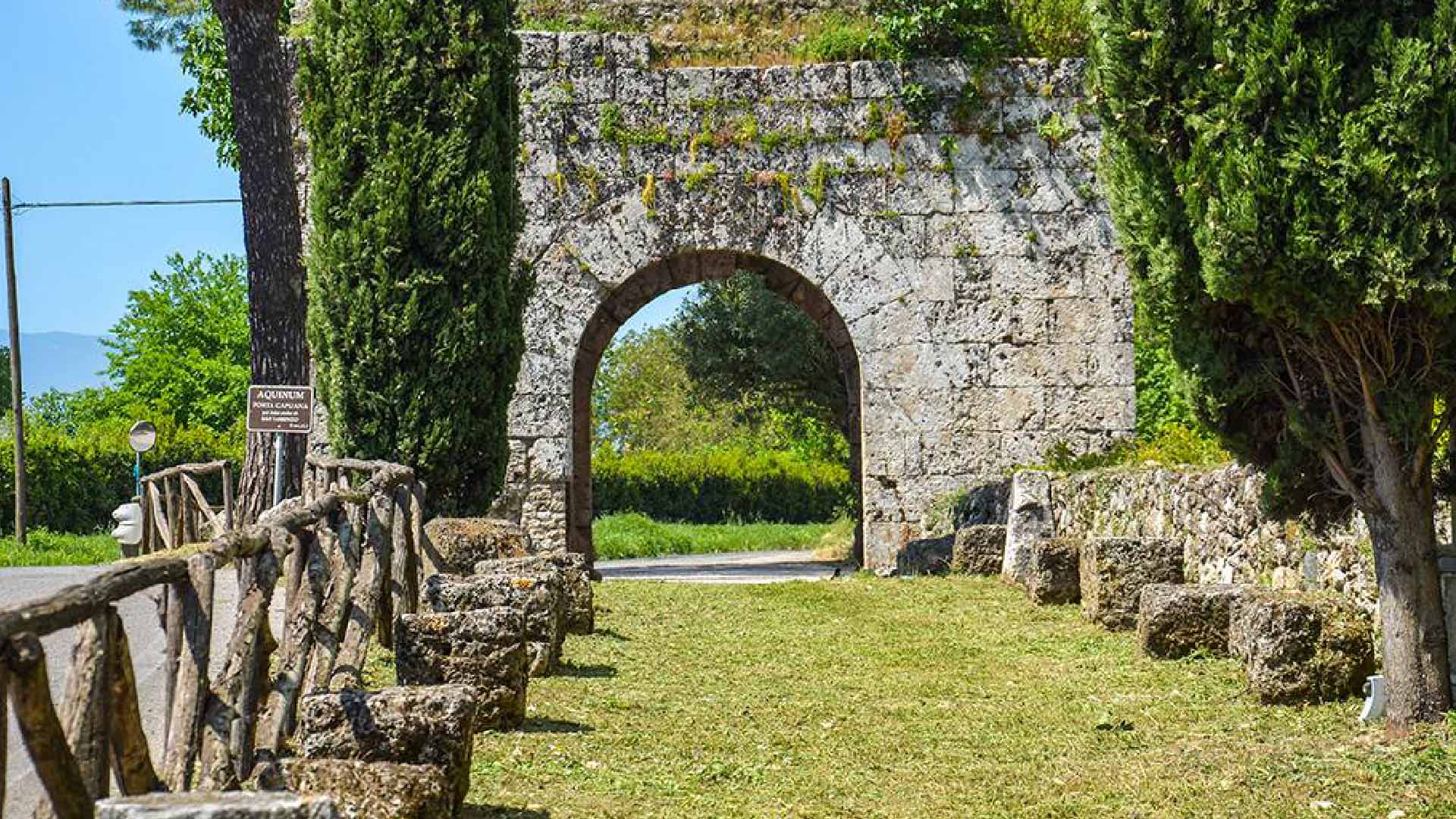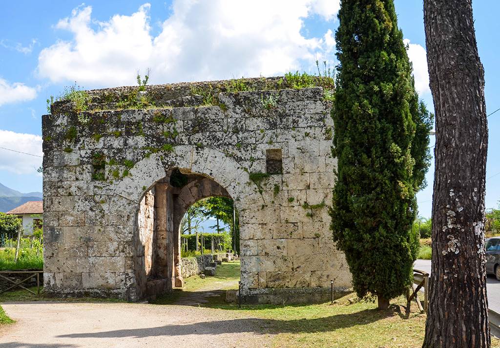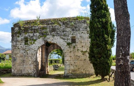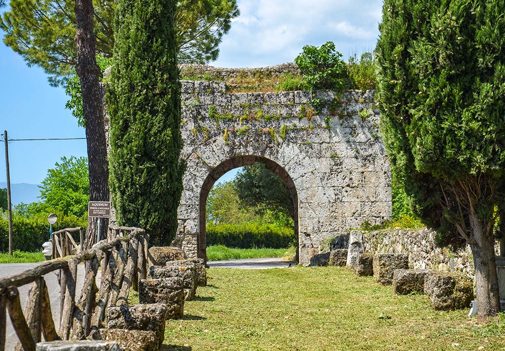 Seguendo la Via Latina, ancora percorribile in un tratto ben conservato, in direzione della Via Leuciana, sulla destra, si incontra pressoché integra la monumentale Porta San Lorenzo, contrapposta alle rovine di Porta Romana, che si apriva invece nel lato occidentale della cinta urbica.